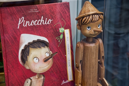 Molto bella questa. Mi piace tanto come il Pinocchio sulla copertina del libro sembri guardare il pupazzo