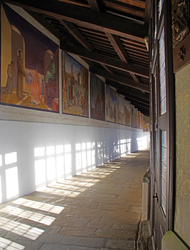 Altri tag (senza riscontro): curva, lungo, passaggio, bel, sacri, stretto, dipinti, pavimento, convento, portico, palazzo, santi, un, luci, sole, porticato, lampadari, interno, pitture, vetri, stanza, esposizione, ombra, edificio.