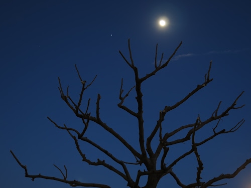 La stellina e la luna indicate di rami , in una notte d'inverno...