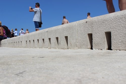Sapevo che era una foto di difficile comprensione, dell'organo si vedono solo i fori praticati nei gradini perché le canne (e la "tastiera) sono sotterranee, ma se qualcuno dovesse capitare dalle parti di Zara, una visita in questo luogo verrà ripagata. L'organo è sempre in funzione 24 ore al giorno col bello e cattivo tempo e il suono è sempre diverso perché dipende dal moto ondoso.