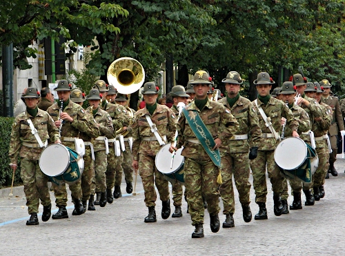 Altri tag (senza riscontro): trombone, uomini, musicisti, bianco, marcia, strada, tuta, costumi, gente, costume, corpo, mimetiche, taurinense, clarino, bandistico, fascia, persone, fanfara, brigata, casse, penne, scarponi, ottone, penna, militari, piuma, fogliame, completa, bassotuba, tromba.