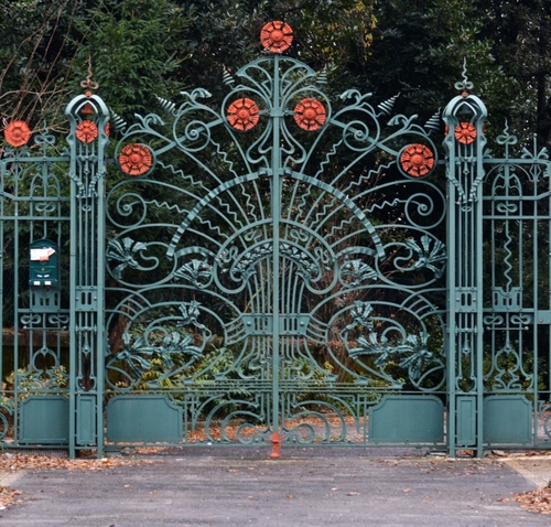 Questo è il cancello di una villa che si trova lungo la circonvallazione esterna alle mura di Lucca ( non ricordo il nome esatto della strada). Sui viali della circonvallazione di Lucca ci sono parecchi edifici liberty. |