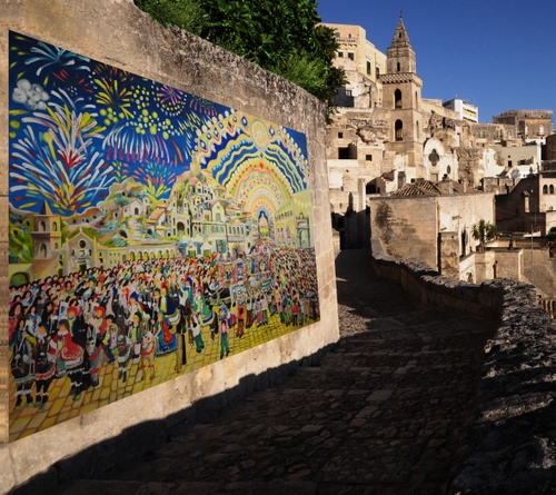 grazie mille Tonino - sì rappresenta la festa della Madonna della Bruna - chiaramente è un collage di due "mie" foto (ero con mavi e mizar) e mi scuso per le imperfezioni (non sono brava nel fotoritocco ... imparerò!). L''idea di incollare un quadro fotografato in un bar pubblico su una parete dei meravigliosi "Sassi" è stata troppo forte e prepotente e qui ne vedi il risultato (per niente apprezzato - ma non importante perché a me piace tantissimo)