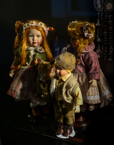 Tag: tre, bambole, capelli, giocattoli, vetrina, porcellana, cappello, occhi, cappelli.