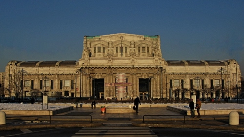 Tag: stazione, neve, piazza, persone, cielo, milano, edificio, palazzo, passanti, centrale.