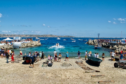 La spiaggia vicino al porto di villa s.giovanni punto di arrivo della traversata sportiva da punta faro di ganzirri a villa s.giovanni.