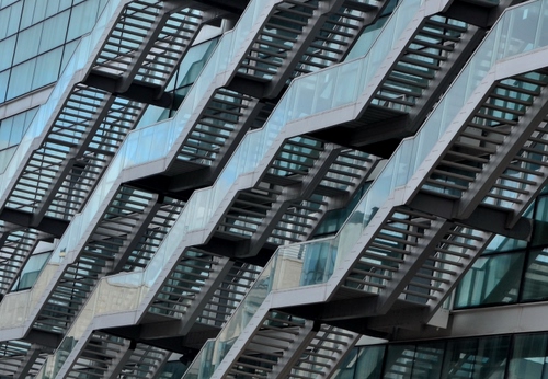 Tag: scale, vetro, acciaio, gradini, palazzo, ringhiere, vetrate, azzurro, esterne, travi, ferro.