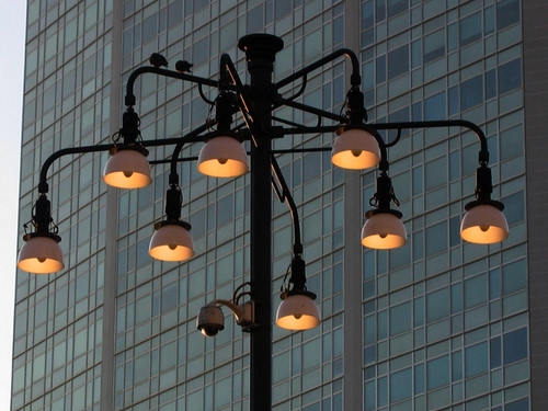 Lampioni davanti al grattacielo Pirelli, a Milano.